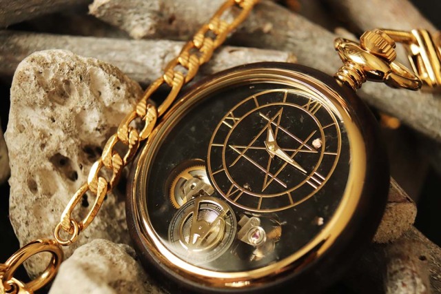 左側は秒針のみが稼働する装飾用の自動巻きムーブメントを搭載しています。