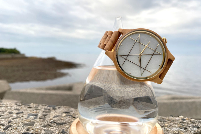文字盤は厳選された高品質な天然石を使用。加工の難しい繊細な天然石を専門の職人と何度も試行錯誤し、 NOZの天然石の文字盤は、石の品質を最高ランクで揃える為にいくつもの工場をはしごして丁寧に工程を一つ一つ進行しています。 天然石は大変割れやすい為NOZは実際に一つ一つを確認し高品質な石を選別しています。 文字盤に使用される天然石の模様の中には NOZの木製バンドは非常に多くの手作業での丁寧な研磨工程を経て誕生しています。 NOZの腕時計はケースやバンドに使用する木材に関しても、模様の美しさや肌触り、滑らかさにこだわっています。 天然木ですので使用されているうちに色が変化し、味わいのある色味になっていくのも木製時計の楽しみとしてお使いください。 最初の原案から5年、本格的に取り組んでから2年の歳月をかけて完成したデザインは、 デザインだけを見ると一見重そうにも見えますが、 サファイアガラスは硬度が高く、傷がつきにくいのが特徴のハイブランドで主に用いられている高品質なガラスです。耐熱温度も透明度も高く、美しい文字盤を眺めるのに最適です。 薄型のボックスを採用するブランドも増えておりますが、NOZでは美しい腕時計を大切に保管していただくため、